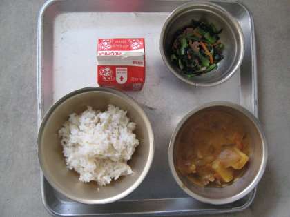 献立内容 玄米ごはん,牛乳,カレー,小松菜のソティ