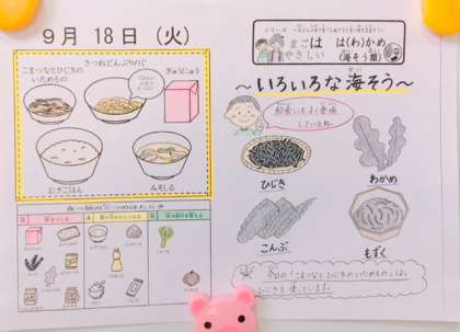 今日の給食は「むぎごはん,牛乳,きつねどんぶりの具,こまつなとひじきのいためもの,みそ汁」でした。