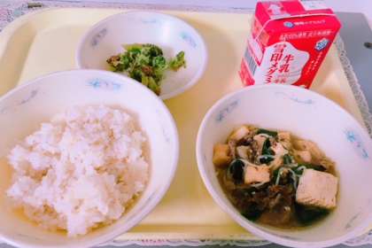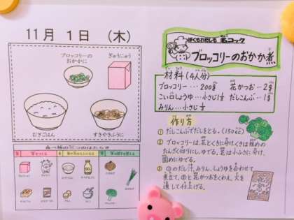 今日の給食は「麦ごはん,牛乳,すきやき風煮,ブロッコリーのおかか煮」でした。