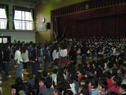 3月1日(火)3校時,体育館で「6年生を送る会」を行いました。6年生の卒業を1〜5年生が出し物であたたかくお祝いし,これまでのお礼の気持ちを表そうとするものです。