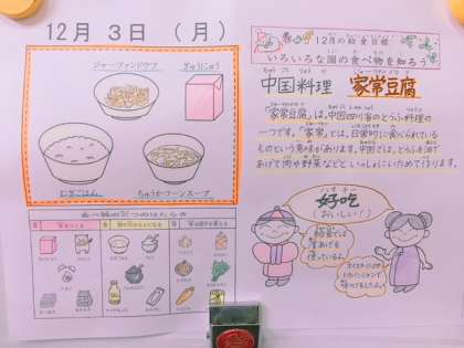 今日の給食は「麦ごはん,牛乳,ジャーツァントウフ,中華コーンスープ」でした。