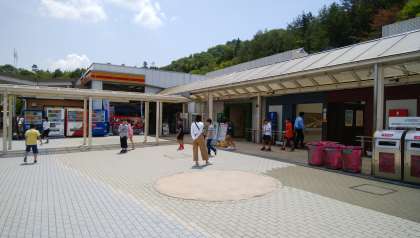 小谷サービスエリアで最後のトイレ休憩です。予定通りの12時過ぎに平和記念講演に到着予定です。広島に向けて再出発!