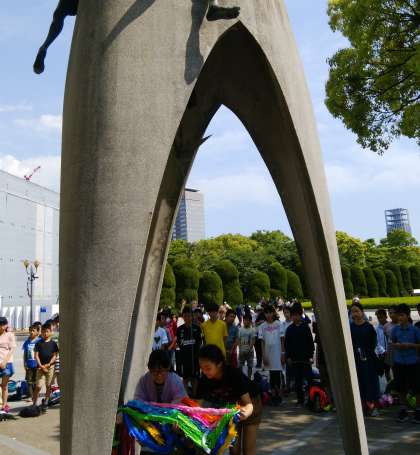 黙祷と折り鶴を捧げ「折り鶴」をみんなで合唱しました。