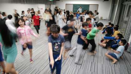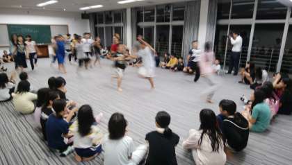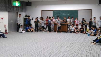 入浴の後は,大広間でレクリエーションをして楽しみました。ゲーム「クワガタ」は,大盛り上がりでした。