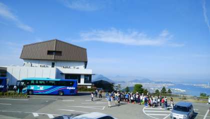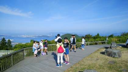宿から見えるきれいな景色ともお別れです。これから中野うどん学校に向けて,休暇村讃岐五色台を出発します。