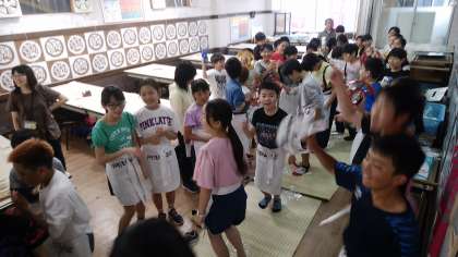 中力粉,水,塩が原料を混ぜた後は,音楽に合わせて踊りながら,うどんをこねました。