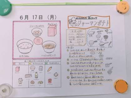 今日の給食は「麦ごはん,牛乳,ハッシュドビーフ,ジャーマンポテト」でした。