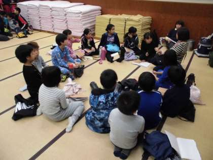 1日の活動をふりかえりました。それぞれの係で明日もがんばりたいことを確認しました。明日も楽しみですね。