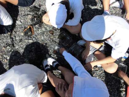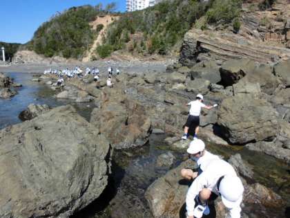 マリンランドの所員さんに海の生き物についてのお話を聞き,いよいよ磯観察開始です。