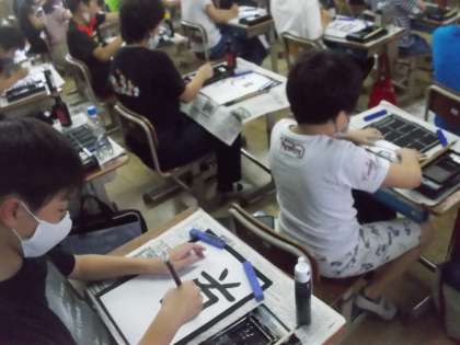 文字の組み立て方と,穂先の動きに気をつけて「道」を清書しました。前回練習してもう一歩だった点に気をつけて・・納得の字が書けたでしょうか。