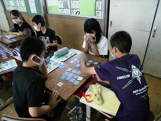外国語の時間に季節と行事の書いたカードを使って,カードマッチングゲームをしました。ランダムに並べたカードをそれぞれ引き,季節が行事とあっていればカードがもらえます。英語の発音にも気をつけながら,楽しんで活動していました。