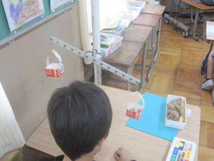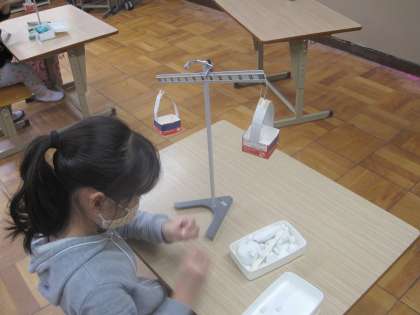 この前は文房具の中のものを重さを比べたり,天秤が釣り合うように考えたので,今日は粘土を使って釣り合うように考えました。