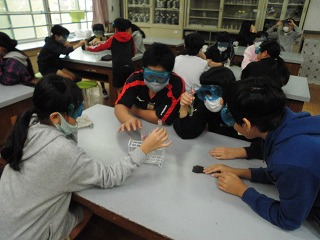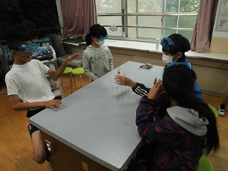 理科の学習で,水溶液の性質についての実験を行いました。見た目は無色透明の液体に何が解けているのか,目で見て,鼻で嗅いで予想を立てました。安全に配慮しながらも楽しんで活動していました。