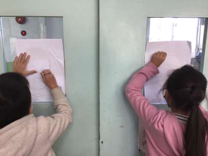 図工の版画の学習を進めています。 木に写し取る絵の下がきをしました。