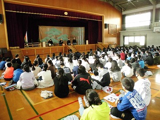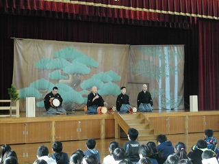 山階南小学校に伝統文化体験に行きました。日本の古くから伝わる伝統文化である能楽を見たり,お囃子,所作などを実際に体験させていただいたり,子どもたちにとって,とても貴重な経験になりました。