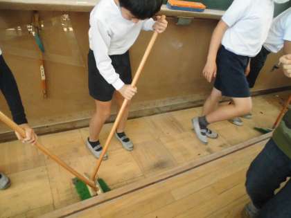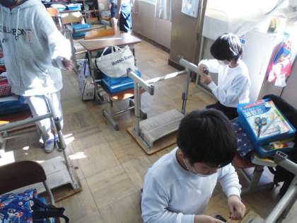 家庭科の学習では「物を生かして住みやすく」の単元を学習中です。今日はよごれの種類に合わせたそうじの仕方を友達と工夫しました。机の足についているほこりは楊枝を使い,壁などはスポンジを使って掃除していきました。「もっとやりたい!」「きれいになった。気持ちがいい!」という声も聞かれました。
