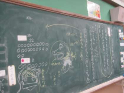 今日の道徳のお話では「おばあちゃんに優しく声をかける登場人物」がいましたね。