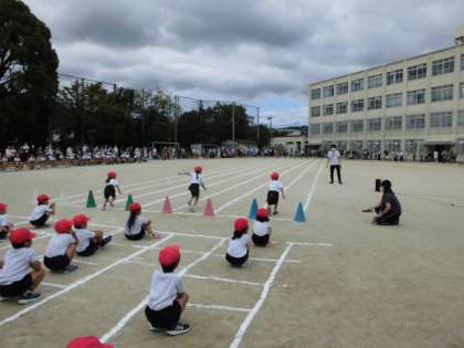昨日は,スポーツフェスティバル低学年(1・2年生)の部の本番でした。月曜日から,天気の心配をしていましたが,一度も降ることなく,無事競技・演技を終えることができました。1年生にとって,初めてのスポーツフェスティバルだったので,朝からドキドキしている子もたくさんいましたが,本番では,みんなにこにこ笑顔で,楽しく踊ったり,一生懸命50mを走ったりしていました。終わってみればあっという間の一日で,子どもたちはやりきった気持ちと,練習の成果が大いに発揮し,とても楽しめた気持ちでいっぱいでした。
