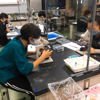 1組のテーマは,小さな生物「ケイソウ」の大きな役割についてでした。みんな最初から興味津々!120分の授業はあっという間でした。