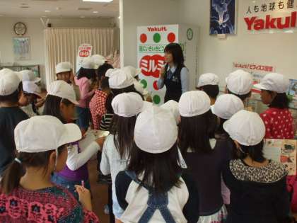 朝から天候にも恵まれ,たくさんの先生方に見送られながら学校を出発しました。槇島のヤクルト本社京都工場では,製品を作る工程や包装する機械を見せてもらい,社会科につながる学習ができました。環境に配慮して廃水をきれいにする施設もあり,4年生の学習にもつながりました。