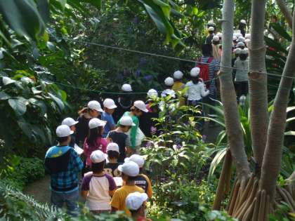 宇治市植物公園では,みんなで昼食をとり,園内の植物に関するクイズラリーを楽しみました。難しい問題もありましたが,がんばって全ての答えを記入している子もいました。