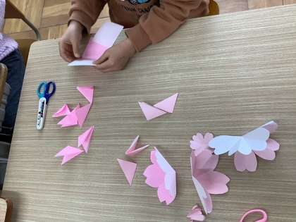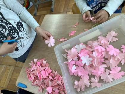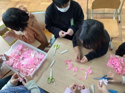 おめでとう!にむけて 公開日 2022/03/09 更新日 2022/03/09 6くみ あたたかい風が吹き始めました。 春がもうすぐそこまで来ています。 春は別れと出合の季節。 卒業する6年生と入学してくる新1年生に おめでとう!の気持ちを込めて 桜の木の掲示物を作っています。 桜の花びらを一枚一枚折って切って貼って 立体にして・・・ きれいな桜の花がたくさんできました。 明日はいよいよ模造紙の木に貼ります。 もうすぐ桜が咲きます!