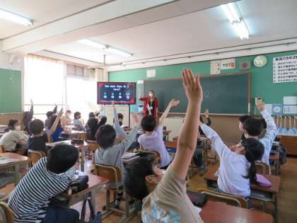 5年生の外国語がスタートしました。本日はALTのグリーン先生が授業に入っていただき,オールイングリッシュで楽しくやり取りをすることができました。