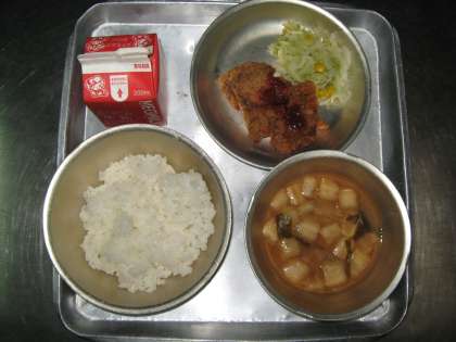 献立内容 ごはん,牛乳,ヒレカツ,ソティ,みそ汁