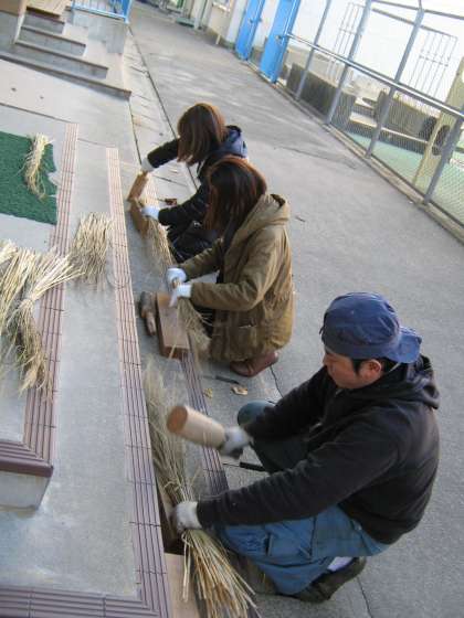 11月26日(土)の朝,体育館で「ふれあい土曜塾」の『クリスマスリース作り』が行われます。その準備として,21日(月)の午後3時からわら打ち作業を女性会とおやじの会・PTA本部役員の方々がしてくださいました。本校の教員は,6時間目の授業が終わるまで参加できないので,初めは少ない人数でしたが,体育館の近くでわらを打つコンコンコンコンというリズミカルな音が響き渡りました。約100人分の準備ということで結構時間がかかりましたが,たくさんの方々に協力いただき無事終わりました。ありがとうございました。