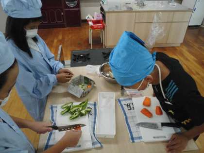 6年生は家庭科の学習で、調理実習をしました。バランスの良い朝ごはんを作ろうと、野菜炒めに挑戦です。グループで声をかけあい、てきぱきと調理を進めて、どのグループも時間内に美味しくできあがりました。