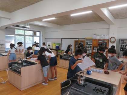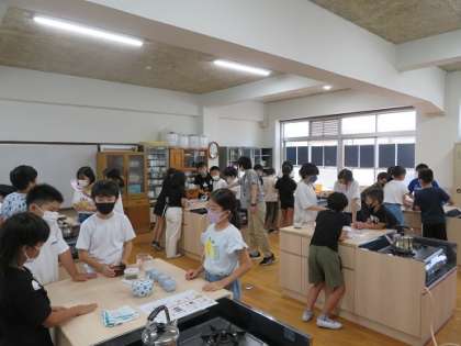 家庭科の学習で、お茶(せん茶)をいれました。お茶は、日本の伝統的な飲み物です。適切な湯の温度や茶葉をむらす時間など、基本的ないれ方を学習しました。子どもたちは、美味しいと言ったり、家でも自分でいれてみたいと言ったりしていました。