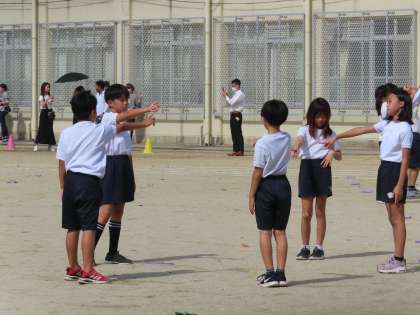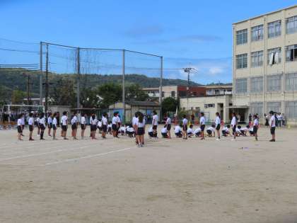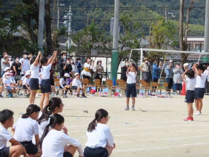 団体演技「自然の威力—One for all. All for one.—」では、練習の成果を生かし一生懸命行うことができました。最後の礼では、5年生の団結力の強さを感じました。