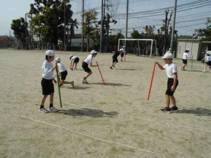 グループで手をつないで順番にくぐってタイムを競ったりしました。
