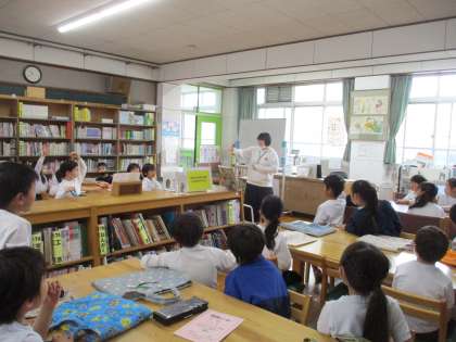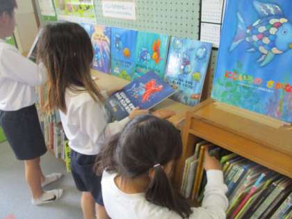 図書館に行って、本を大切に扱う方法や図書館の本の分類についてなどを勉強しました。