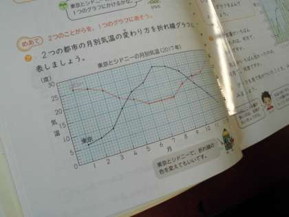 東京とシドニーの気温の変化を折れ線グラフにすると、いろいろな発見があったようです。