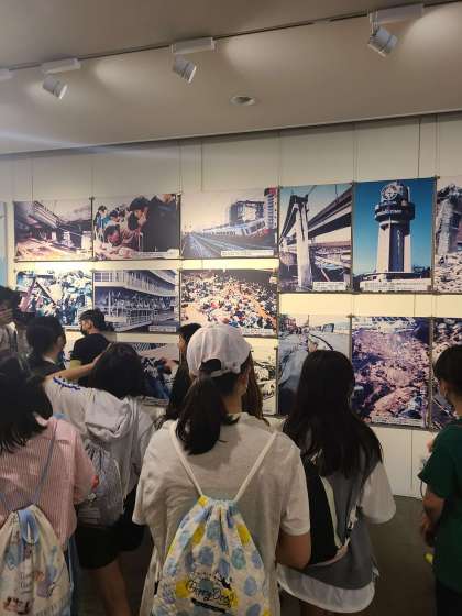 北淡震災記念公園に着いた子どもたちは、28年前実際に震災を経験した方のお話を聞きました。