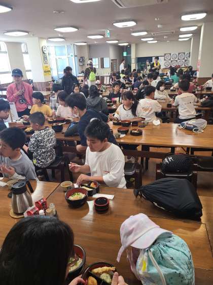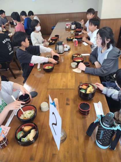こんぴらさんからもどってきた子どもたちは、讃岐名物のぶっかけうどんを食べました。