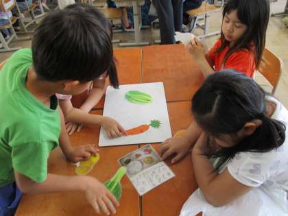 自分たちが日ごろ食べているメニューにはどんな野菜が入っているかみんなで考えました。