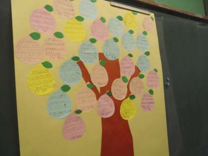 児童集会の後には、各学級で人権の木を作成しました。4年生は、仲間を大切にする行動や言葉がけを考えました。今日考えたことを積極的に実践していきましょう。