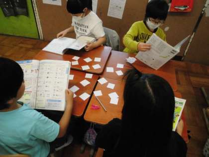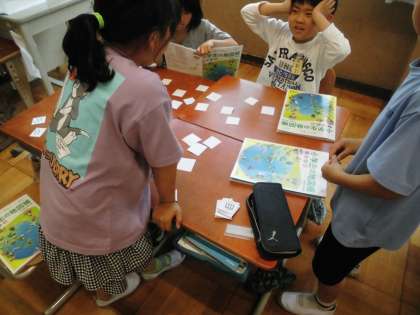 今まで見てきた絵地図よりも地図記号が便利だと気づきました。そこで楽しく学習するため、カードゲームにして遊びながら学習を進めていきました。とても盛り上がりながら新しい記号を覚えていくことができました。