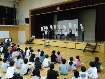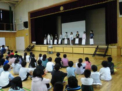 人権集会 公開日 2023/05/17 更新日 2023/05/17 3年生 5月は憲法月間です。児童集会では人権と憲法についてのお話を校長先生から聞いた上で、教室で人権について話し合いました。3年生は「なかま」についてそれぞれ考えたことを掲示板に貼っています。