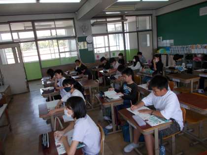 理科で『植物の成長と日光の関わり』を学習しています。植物の葉に日光が当たると、葉にデンプンができるかどうか、実験で確かめることになりました。この日は実験方法を確かめて予想をしました。2日かけて実験をします。結果が楽しみです。