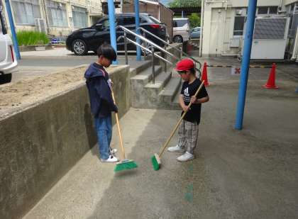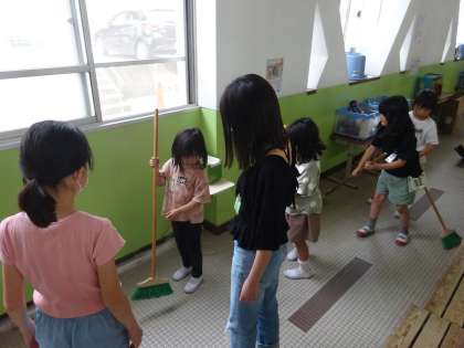 本日より、6年生が1年生に掃除の仕方を教えに行っています。ほうきの持ち方やぞうきんの使い方など、掃除の基本的なところから1年生に伝えることができました。自分の教室に帰ってきた時には、「かわいかった!」「先頭ではいていたら、みんなついてきてくれた!」など充実した感想が多かったです!