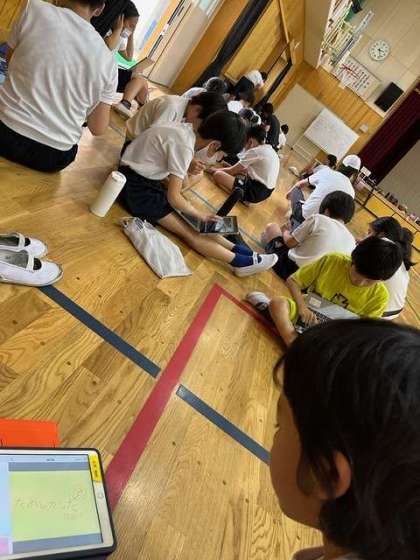 ぼくから。友だちから。 公開日 2023/05/18 更新日 2023/05/18 6くみ ソフトバレーボールの後は ロイロノートで友だちにエールを送ります。 「ボールにさわれたよ!」 「ありがとう!」 送り終わって前の画面に戻ると 友だちからもメッセージが届いていました。 「とてもナイスでした!」 「サーブがとてもうまかったよ!」 満面の笑みですごく嬉しそうです!