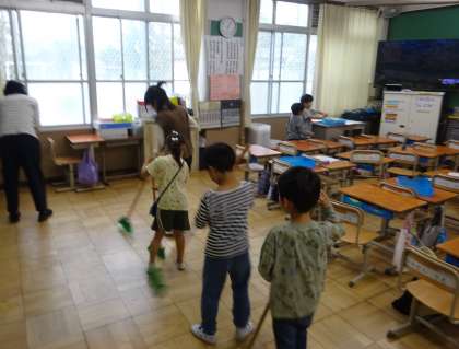 今日も6年生は、1年生に掃除のやり方を伝えに行きました。しゃがんで1年生の目線に合わせたり1年生と一緒にぞうきんがけをしたりして、優しい6年生の姿が見られました。すごいぞ!6年生!