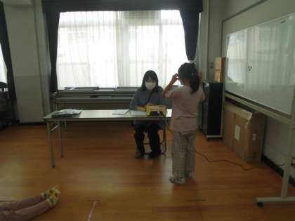 聴力検査がありました。言われる前に並んで静かに座る姿勢が素晴らしい!
