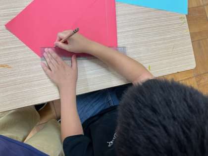 四つ折りにした画用紙に
