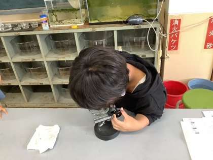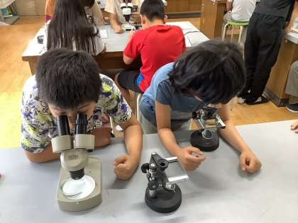 理科の時間にメダカの卵を顕微鏡で見ました。