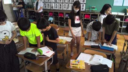 今日は休日参観でした。同じ読み方の漢字を見つけて、交流しました。