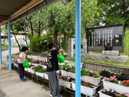委員会活動〜花の水やり〜